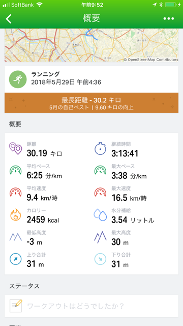 マラソンレース前には仕上げの30kmランを